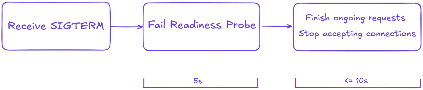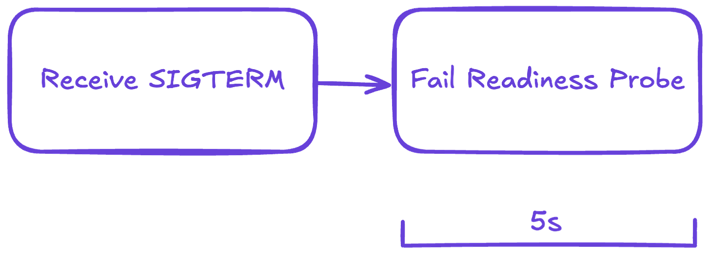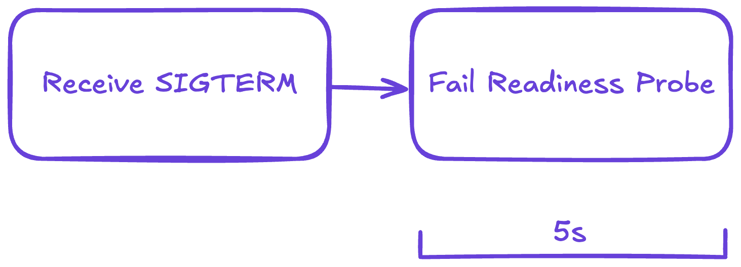 To avoid connection errors during this short window, the correct strategy is to fail the readiness probe first. This tells the orchestrator that your pod should no longer receive traffic.