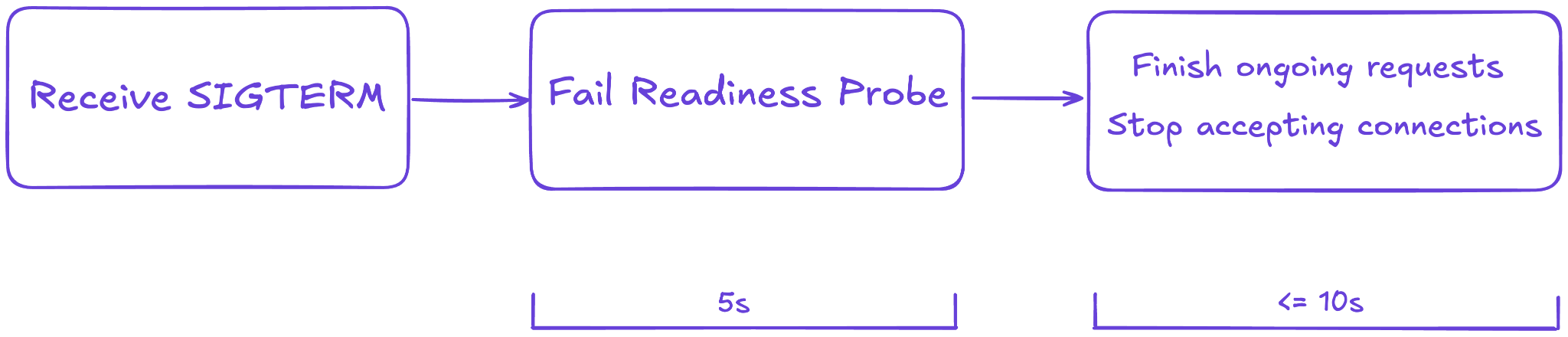 You would assume that if we received a SIGTERM from k8s, the container doesn't receive any traffic. However, even after a pod is marked for termination, it might still receive traffic for a few moments. For example in case of external load balancers, which could rely on the readiness probe.