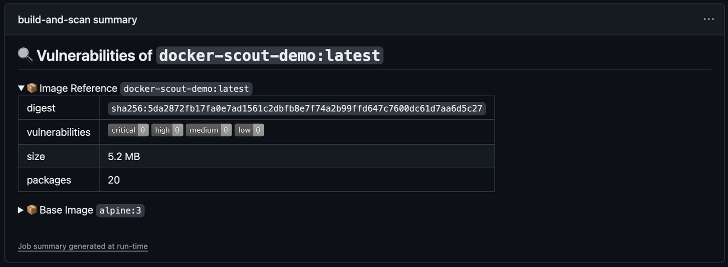 Docker Scout has a GitHub Action to run the Docker Scout CLI as part of your workflows.